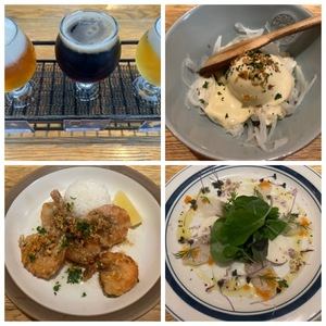 テイスティングセット(3種)ペールエール/ハマクロ/瀬谷の小麦北あかりのポテトサラダ ウフマヨのせガーリックシュリンプ真鯛と小蕪のカルパッチョ