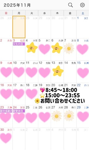 お店からだと直前にしかご予約とれないのですがLIN〇でもお問い合わせ可能です