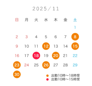*現状出勤日について11月8日10時〜18時、12日10時〜18時、15日10時〜18時の枠が空いております。梅宮の事が頭の片隅にあるお兄様、お待ちしておりますね。