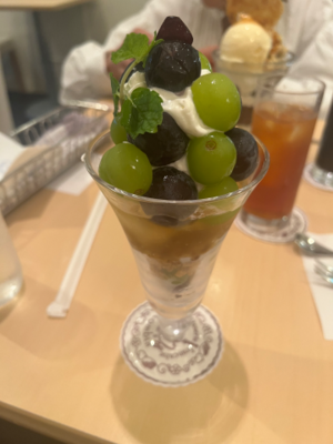 無我夢中でぶどうを頬張っていました??