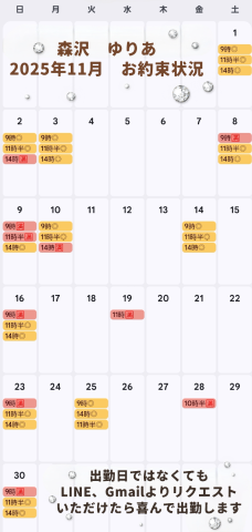 11月も、リクエスト出勤喜んでさせていただきますので出勤日になっていなくてもご相談ください