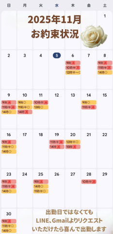11月はPTAも少なめなので、平日も午前中だけ、午後だけなどリクエスト出勤承ります??♀?