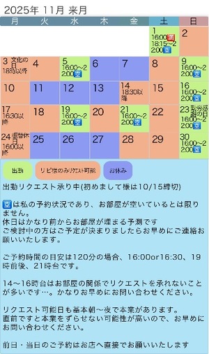スケジュールはこちらhttps://freecalend.com/open/mem266181_date202510気になる日をタップしていただくと、詳細がポップアップいたします