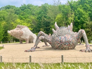 「乙事主」の滑り台と「タタリ神」のオブジェが